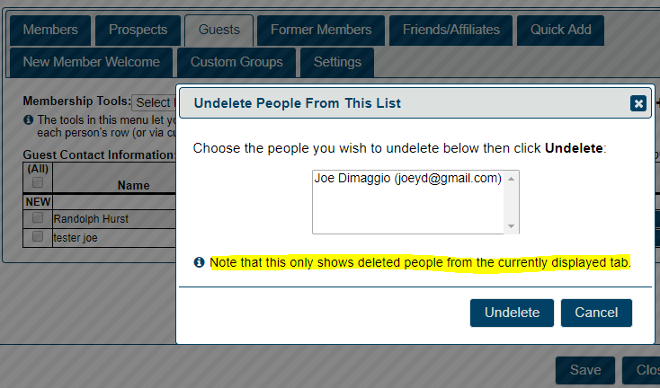 UPDATED FEATURE - Updated Undelete Function in Membership Management