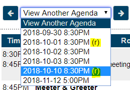 Additionally, if you are reconciling agendas, you will see a "(r)" in the agenda date selection drop-down to enable you to quickly see which have been reconciled.