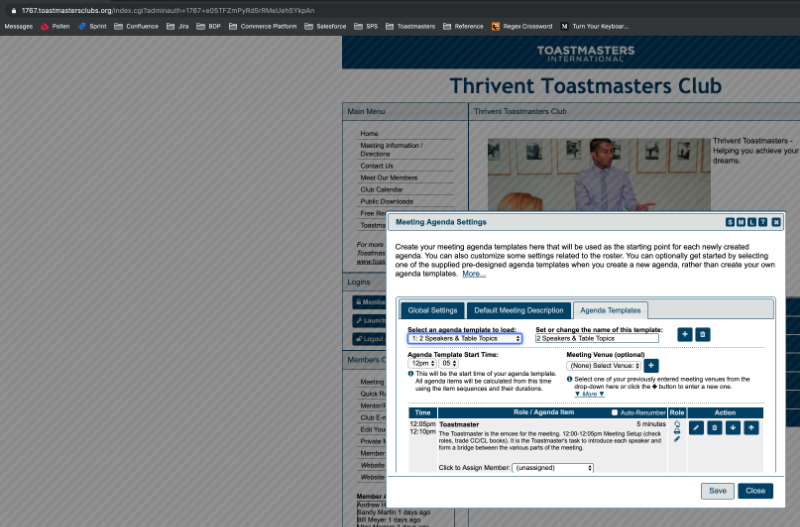 I'm having some trouble getting the venue to 'stick' on the agenda templates.