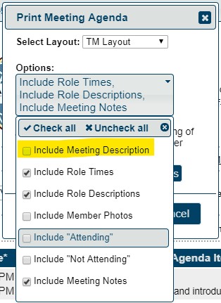 UPDATED FEATURE - Print Meeting Description Print Option
