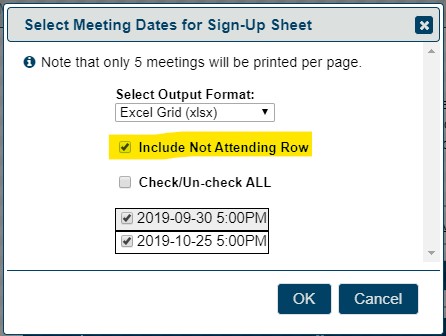 UPDATED FEATURE - Meeting Signup Sheet - Include Not Attending Row
