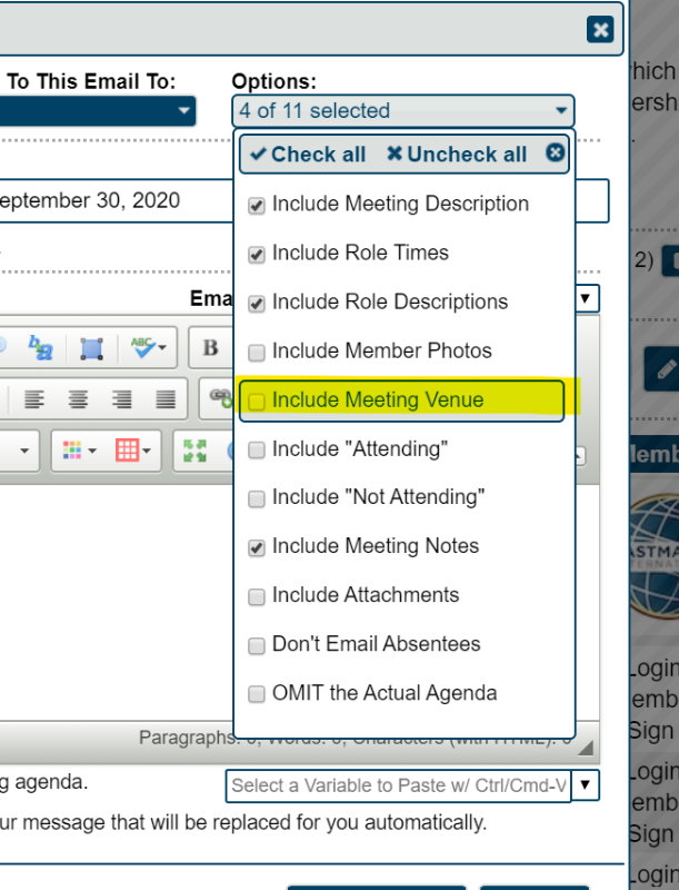 kenmatos wrote: This is a great. I just want to confirm that the link does not go out when the Agenda is sent via email, therefore, people will have to log into the club website then select the agenda then click the link?