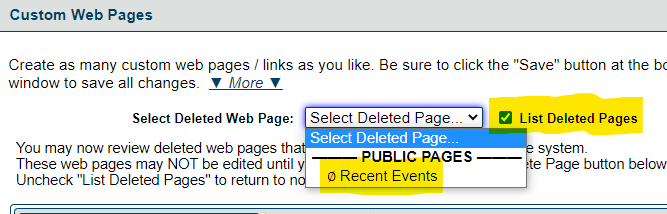Recent Events has disappeared as an item under Main Menu