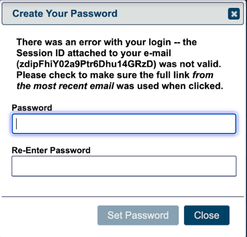 There was an error with your login -- the Session ID attached to your e-mail (zdipFhiY02a9Ptr6Dhu14GRzD) was not valid.