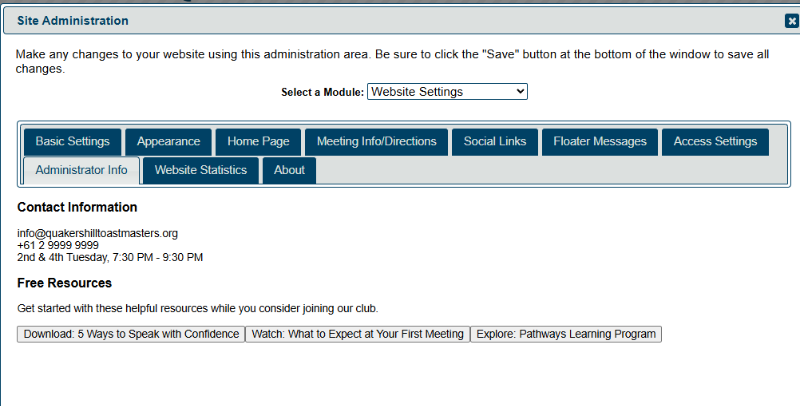 But, When I try to go to Administrator Info tab, there is no editable field, so that I may edit or add new.