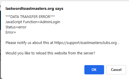 LastWordToastmasters login errors data Transfer Error
