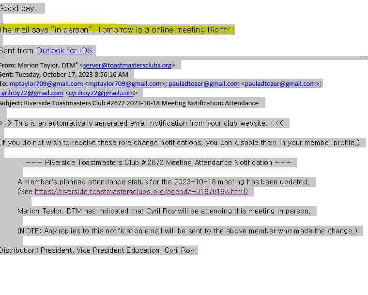 Email wording for Meeting Attendance Notification