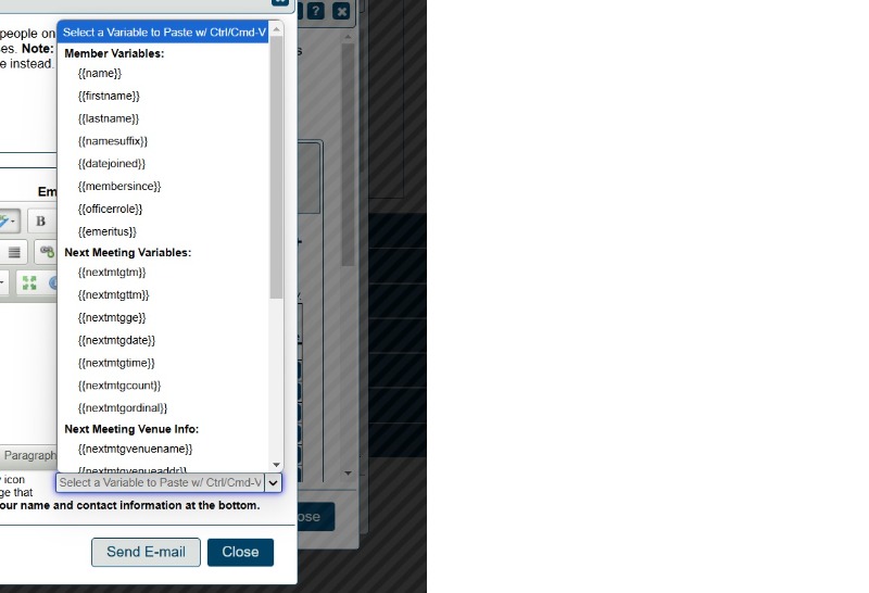 Brian Thank for the reply. I mean if we can get Toastmasters membership number into variable to be used with FTH Mail merge email tools. That will be helpful.