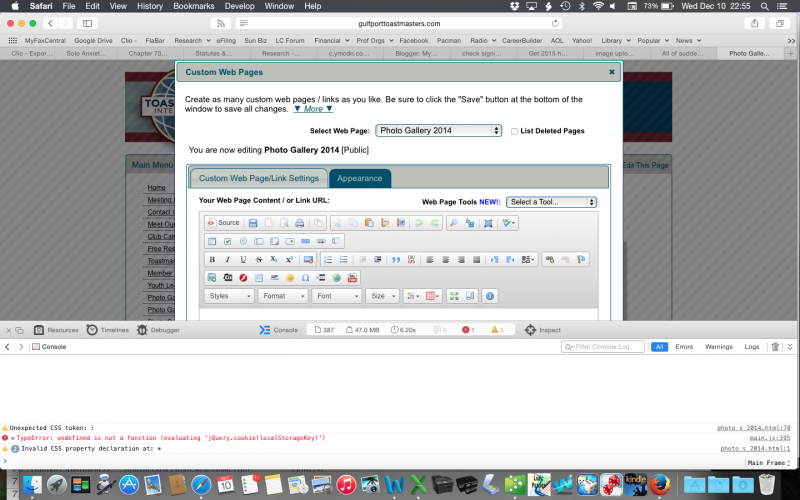 I am working on a Mac, OS X 10.10.1 Safari 8.0.