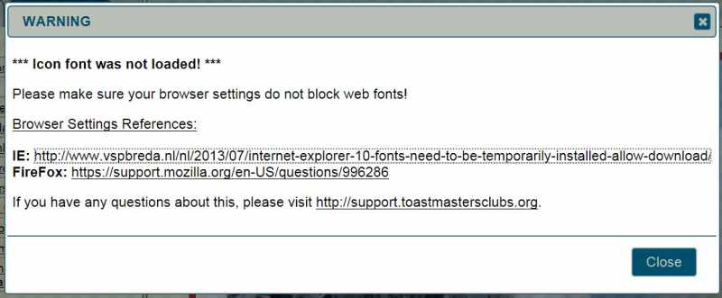 Hello, I have been having this same problem. It was first noticed in April of this year and is ongoing. I can see the icons on the agenda's button bars only when I am using my personal PC to access my club's website agenda. However, if I use my government-owned laptop (which I often do since I spend the vast majority of my time at work), then I cannot see the icons on the button bars. I have already requested help from the IT Helpdesk at my agency. We agreed that the problem was likely caused by a crackdown on Internet permissions by my agency this year (I had been able to see the icons last year). Some loosening of those restrictions were made, but they did not seem to have any effect. I was warned that even though the website development team at work will continue to explore this issue, for security reasons no further changes could be promised.