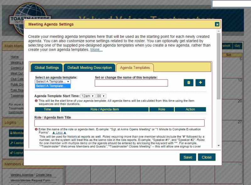 CALENDAR: Can you have blue 'Club Meeting' without agendas?