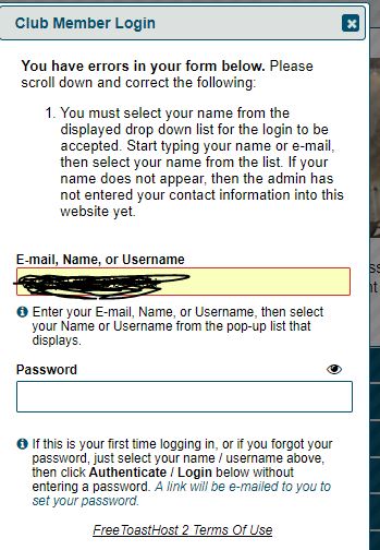 Re: unable to login to club website