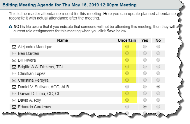 Attendance does not default members to Uncertaain