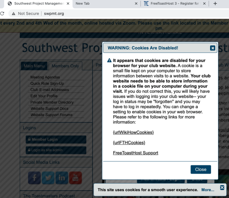 Warning: Cookies are Disabled