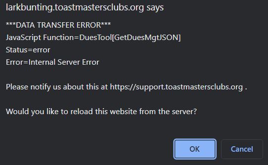 Data Transfer Error on DuesTool
