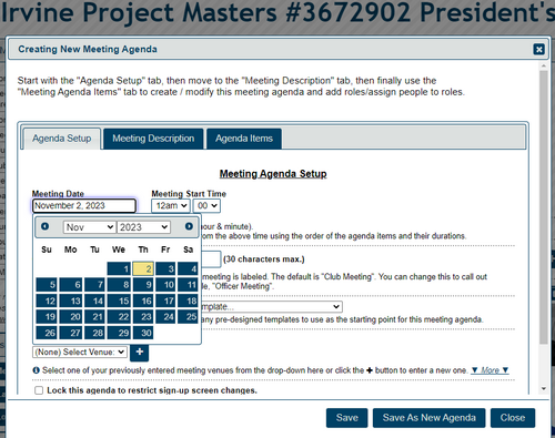 Adding new Agendas for future meetings
