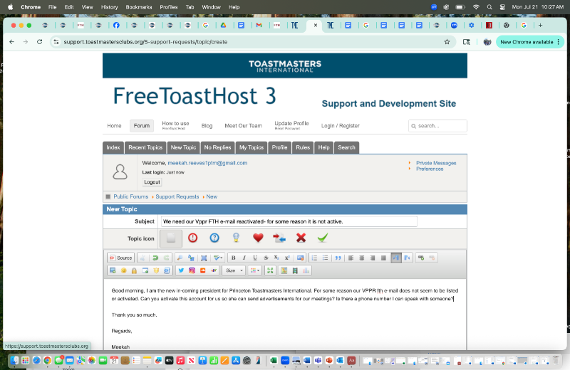 We need our Vppr FTH e-mail reactivated- for some reason it is not active.