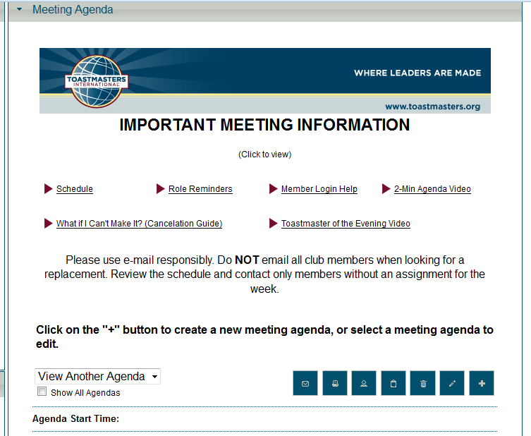 In my club, I am pretty much driving the use of the FTH 2 agenda. We were using the FTH 1 agenda system before, so we were already used to using an online signup system.