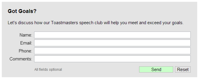 Let's discuss how our Toastmasters speech club will help you meet and exceed your goals.<br /><br />